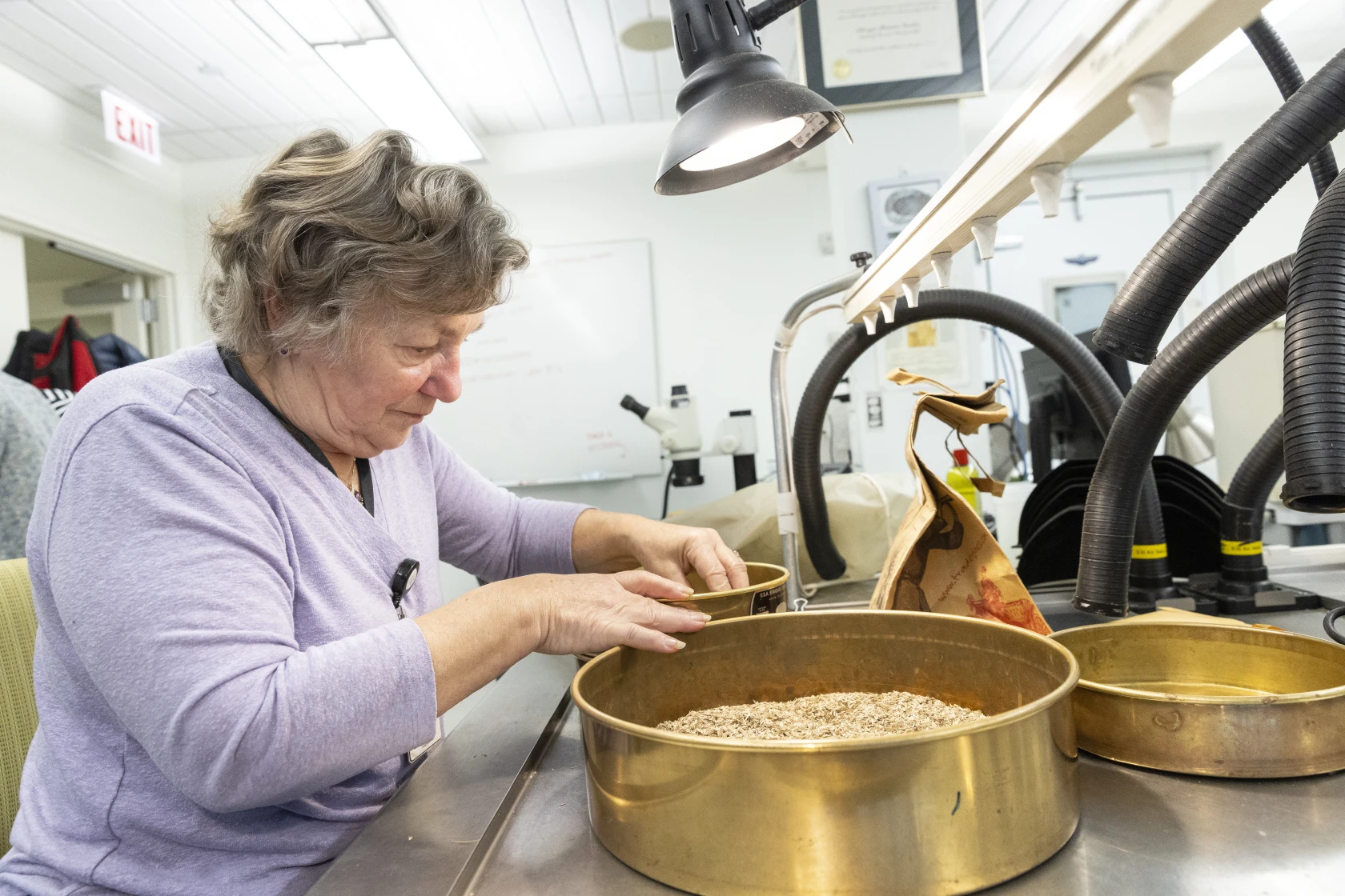 “Fluff is fun,” Landorf said laughing, seated alongside five other volunteers cleaning, counting, and sorting seeds at a long metallic table in the garden’s seed bank preparation lab.